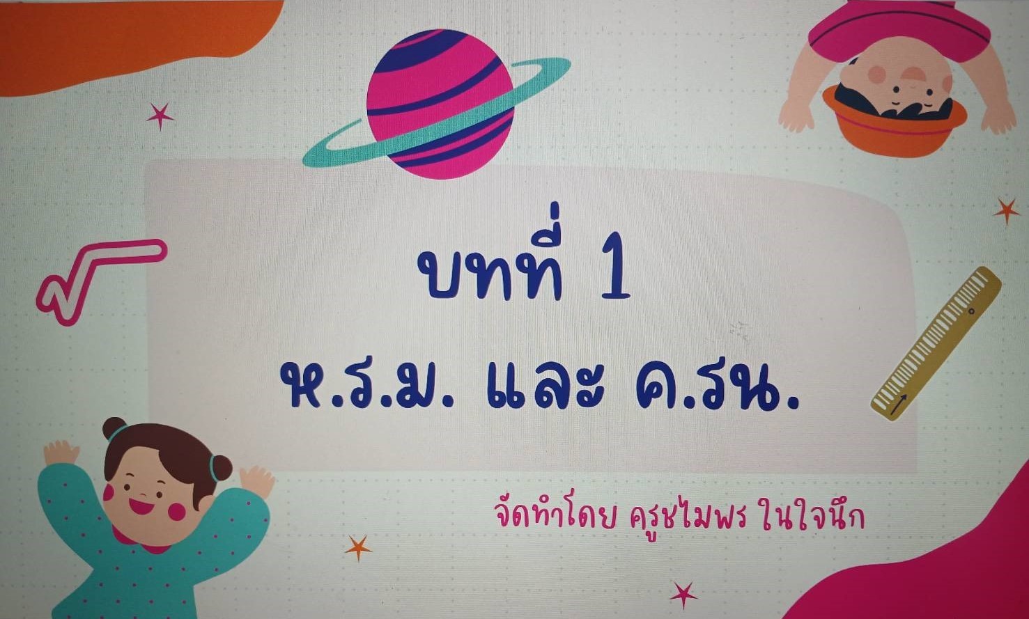 สื่อการเรียนรู้วิชาคณิตศาสตร์ระดับชั้นประถมศึกษาปีที่ 6 เรื่อง ห.ร.ม. ค.ร.น ครูผู้สอน นางสาวชไมพร ในใจนึก